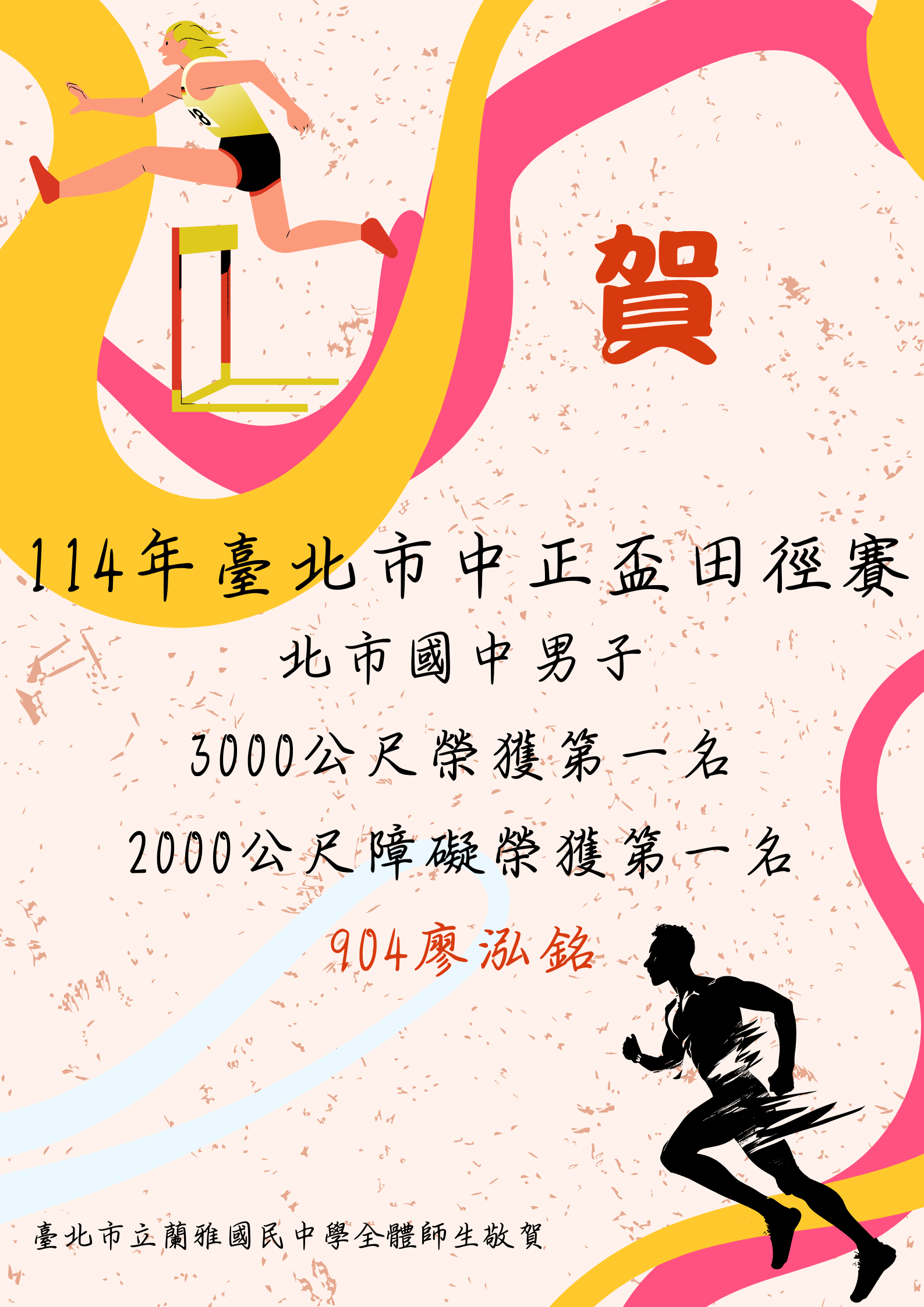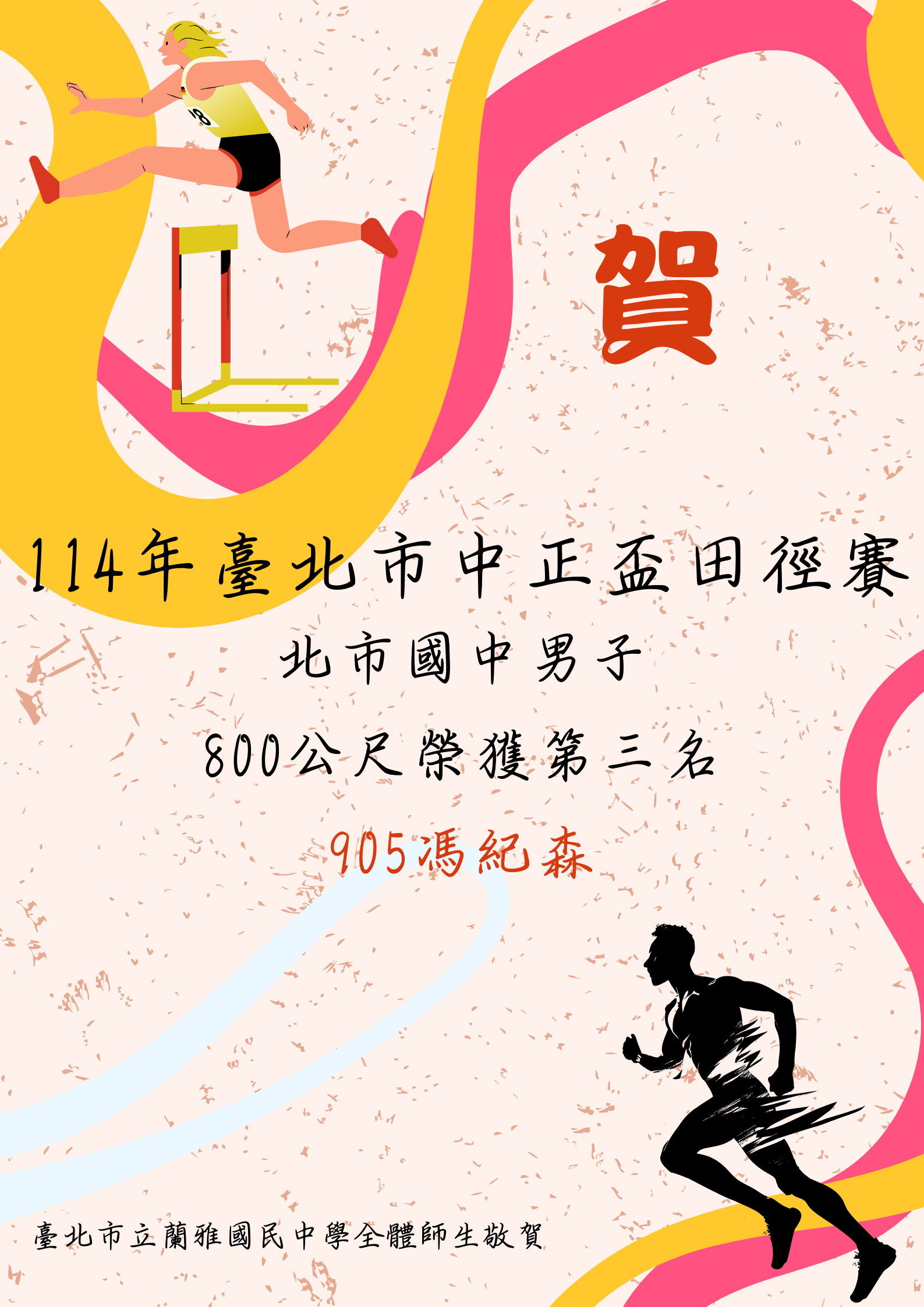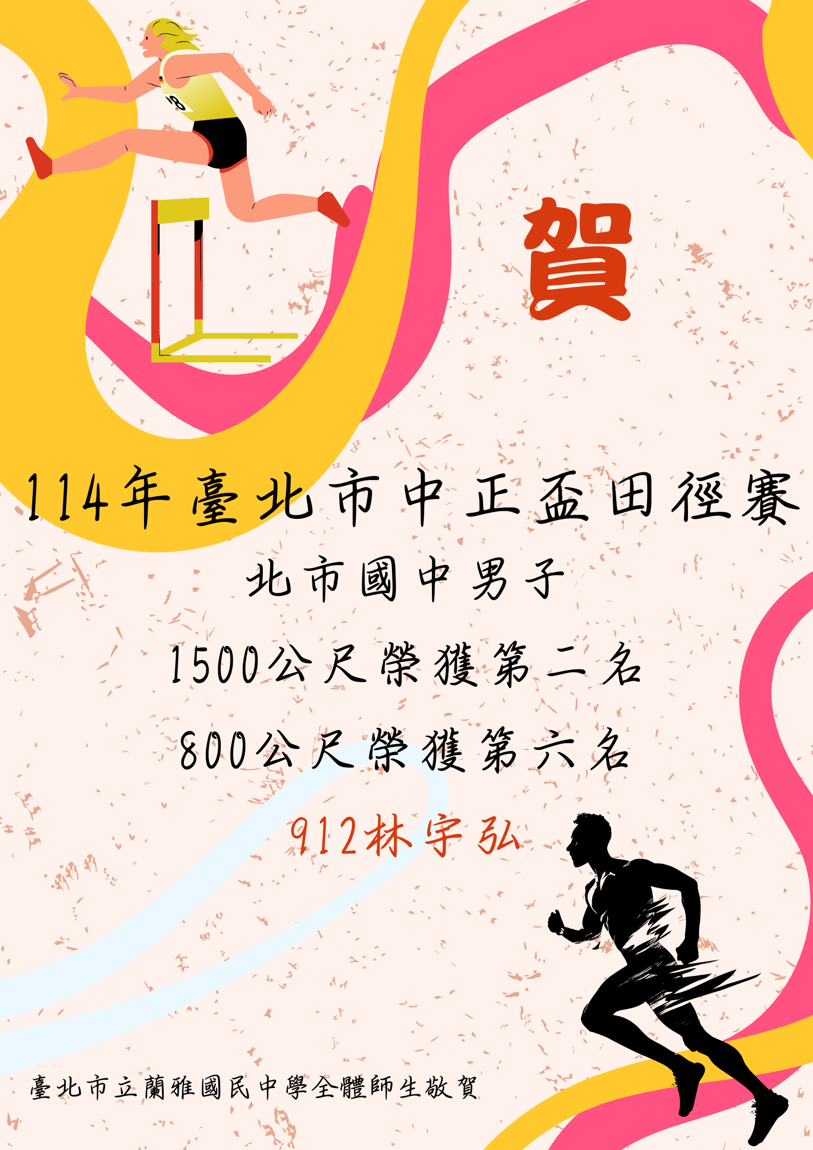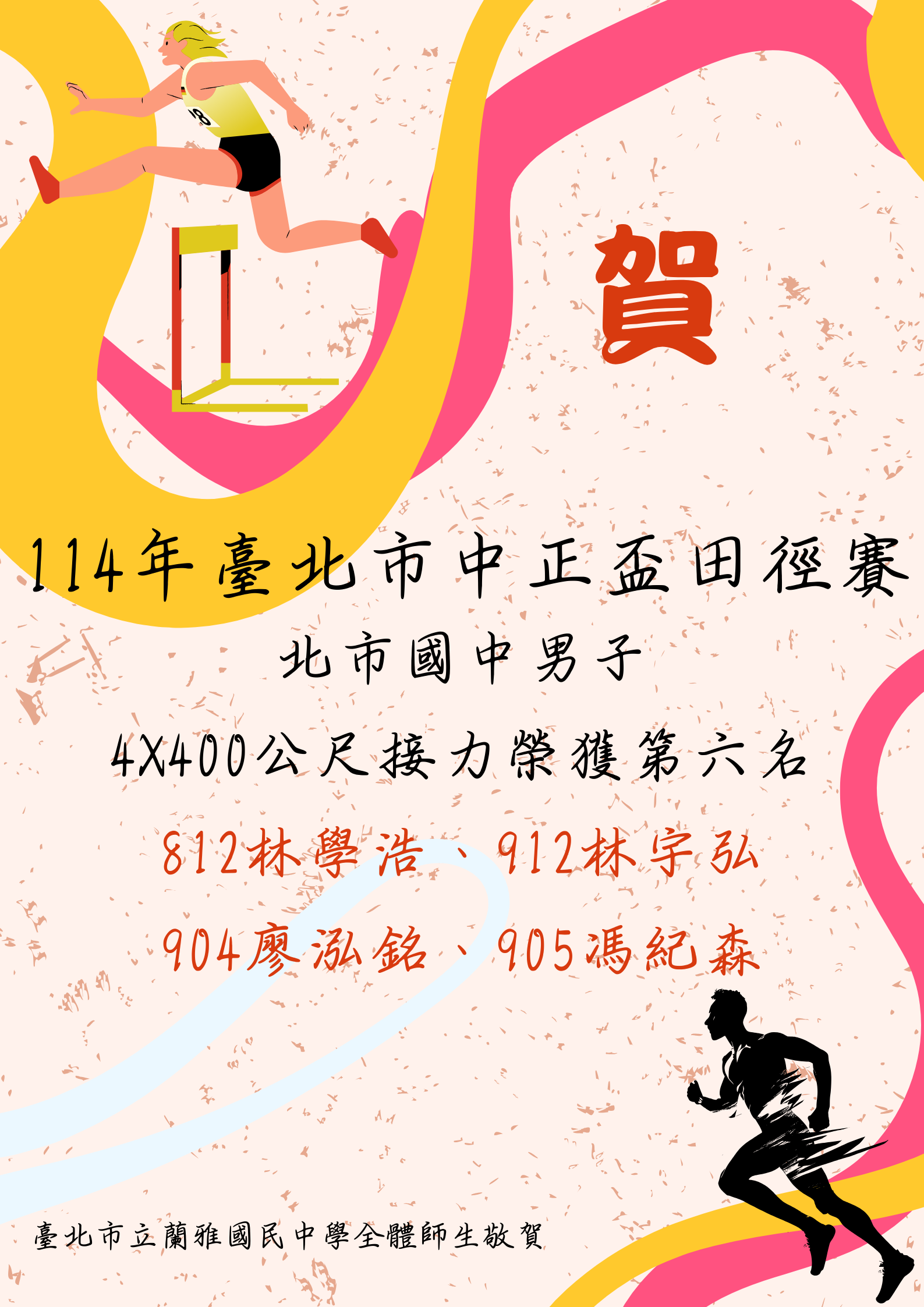 賀!本校學生參加【114年臺北市中正盃田徑賽】表現優異!~感謝李秀美教練的指導~~