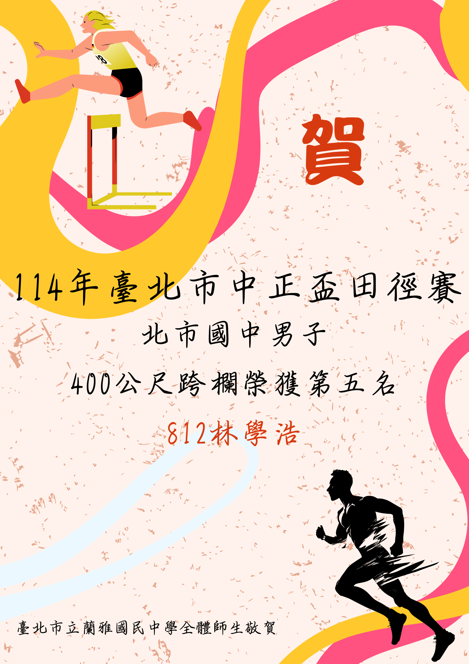 812林學浩--114年臺北市中正盃田徑賽北市國中男子400公尺跨欄 第五名
