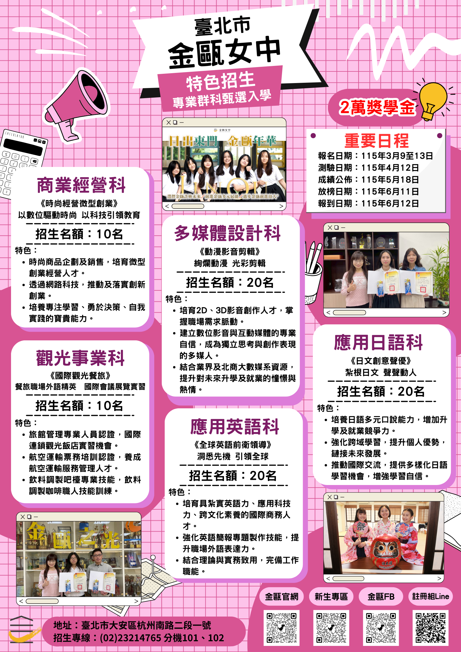 台北市金甌女中115學年度【特色招生】資訊,歡迎點選