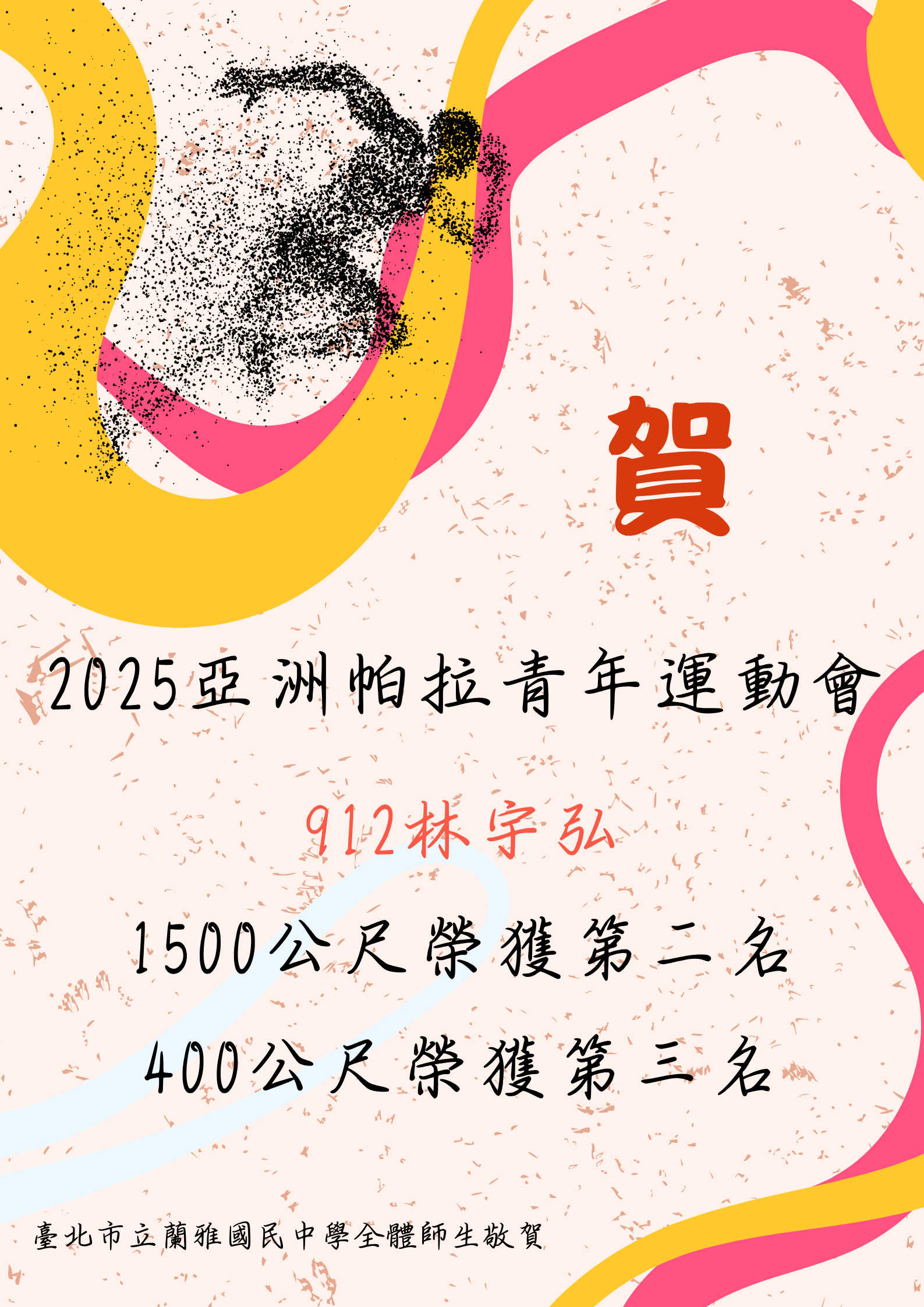 賀!本校田徑代表隊參加【2025亞洲帕拉青年運動會】表現優異!感謝李秀美教練的指導~~